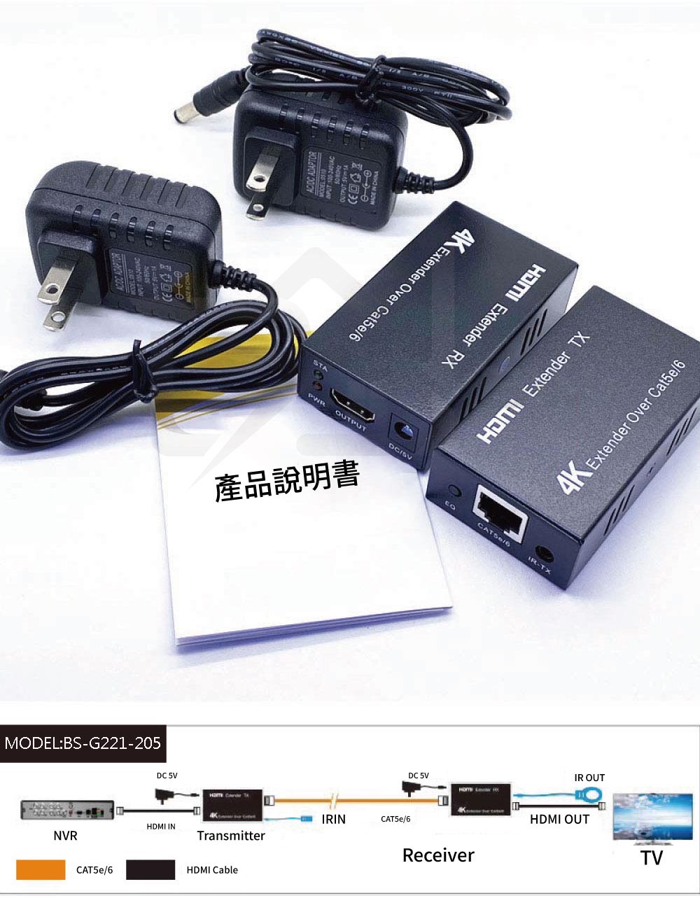 100米距離為1080P畫質(建議使用Cat6網路線)