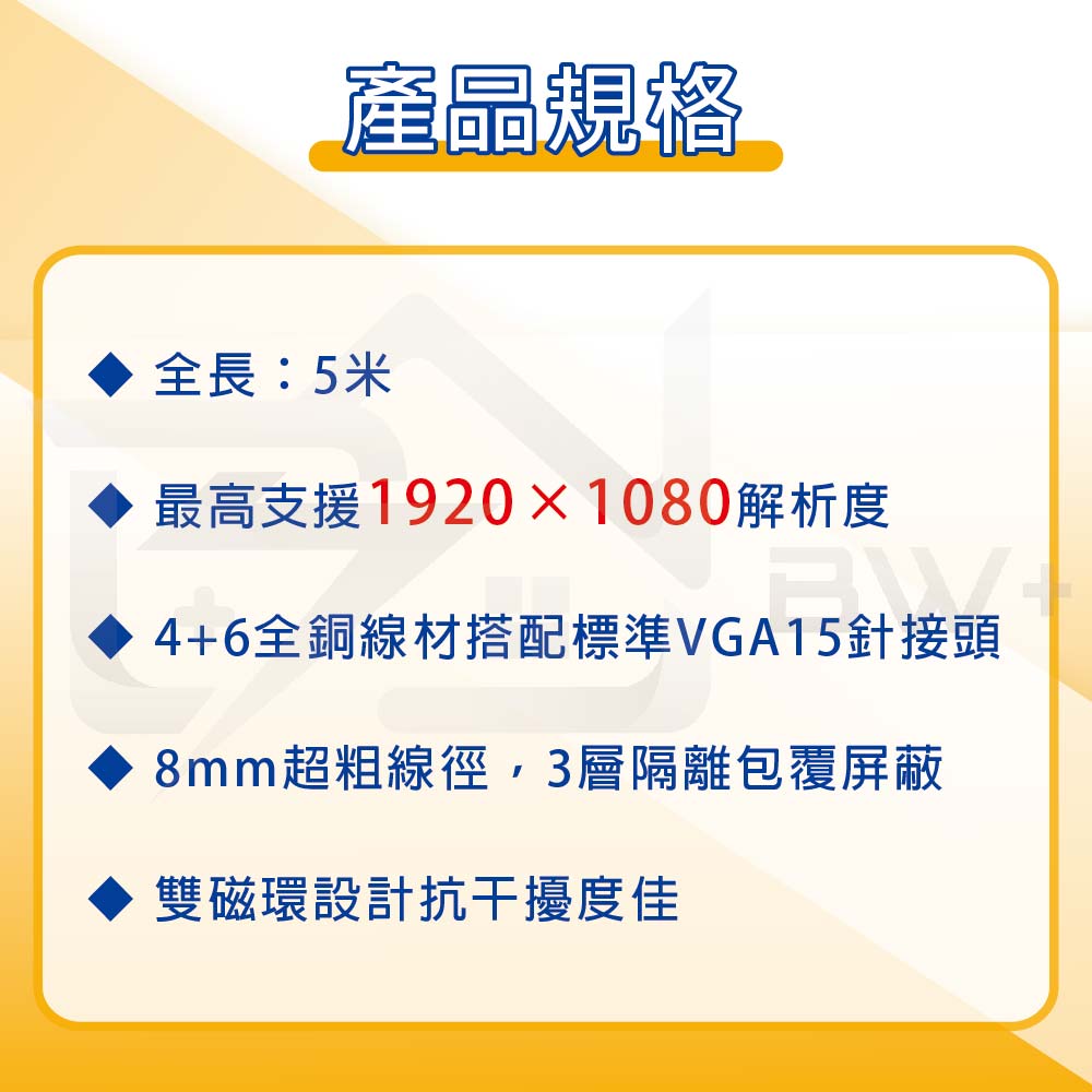 VGA 公對公傳輸線 - 4+6版|5米|工程版專用 數量