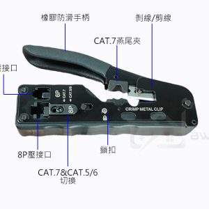 ◆剪線、剝線、壓接三合一把搞定水晶頭壓接 ◆CAT.7&CAT.6/5通用 ◆輕鬆省力好壓